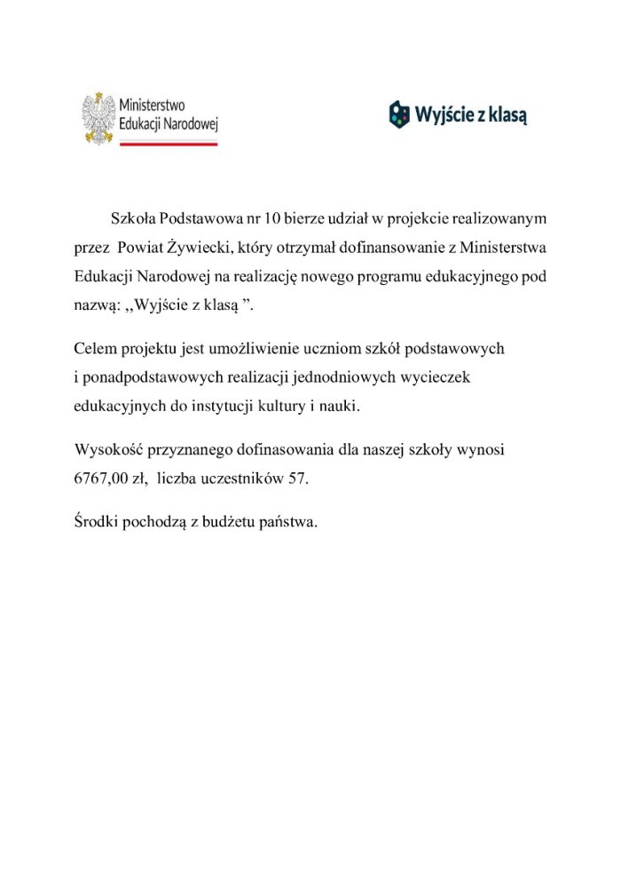 W dniu 2 grudnia br. uczniowie Szkoły Podstawowej nr 10 wzięli udział w wycieczce do Bielska -Białej, zrealizowanej w ramach programu Ministerstwa Edukacji Narodowej „Wyjście z klasą”.
